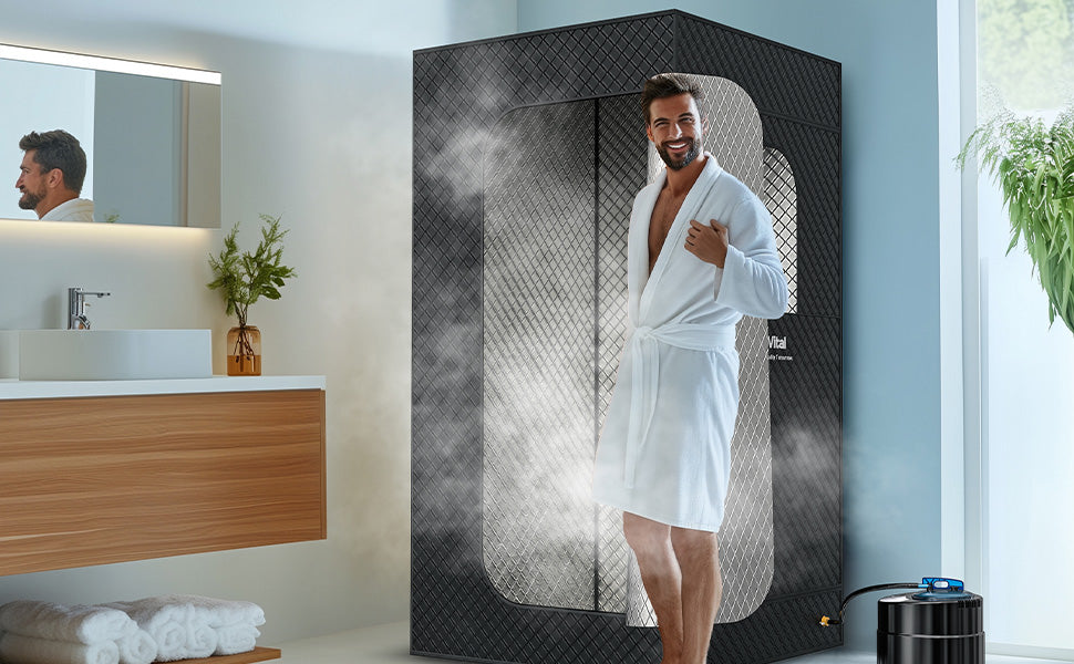 Generous interior (34.43"L × 34.43"W × 70.8"H) offers ample room to stretch, move freely, and adjust your sitting posture comfortably, allowing you to fully immerse yourself in the healing effects of steam.